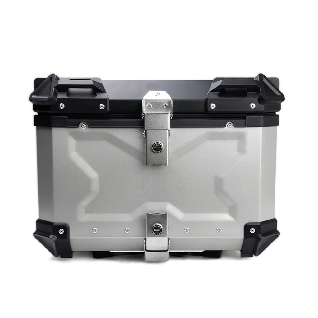 Baúl de aluminio premium que protege tu equipaje con cerradura de seguridad. Perfecto para uso diario o aventuras largas en carretera.